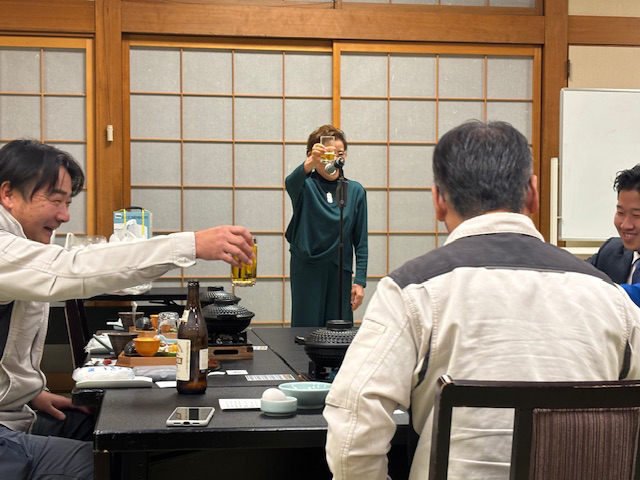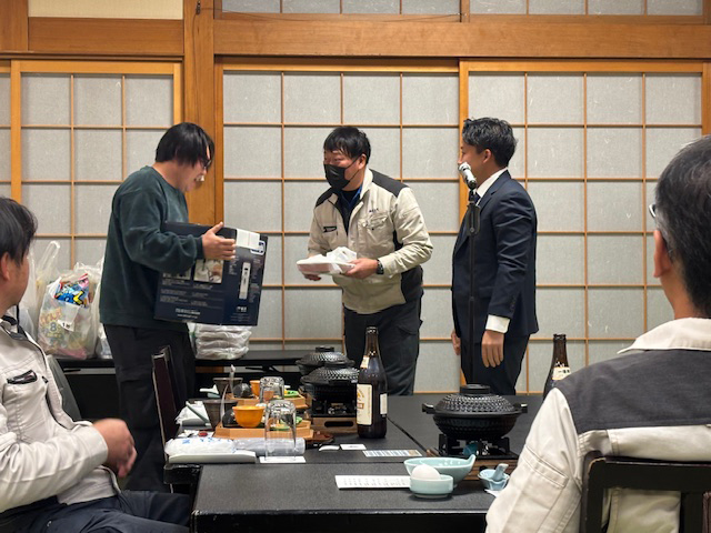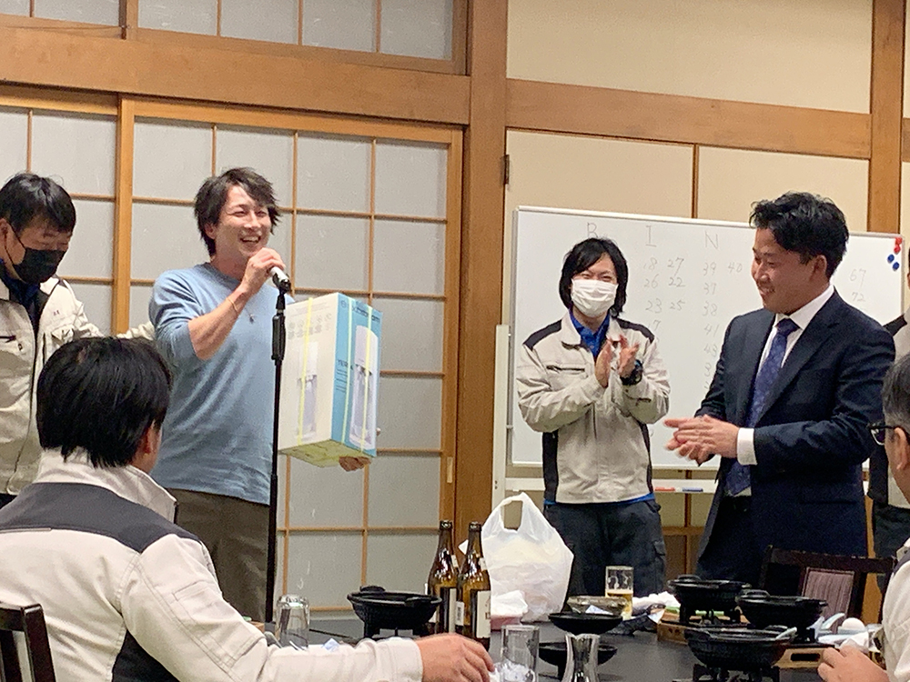 2025年12月04日 お知らせ 芋煮会を行いました 先日、遅めの芋煮会を行いました。 会場は、いつも内線工事課のお仕事でお世話になっているほほえみの空 湯舟つるやさんで行いました。 先日、東北電力さんから頂いた表彰状の報告から始まり、豪華景品を掛けたビンゴ大会やじゃんけん大会と内容盛りだくさんのとても楽しい会になりました! 準備を行っていただいた内線工事課の方々ありがとうございました!